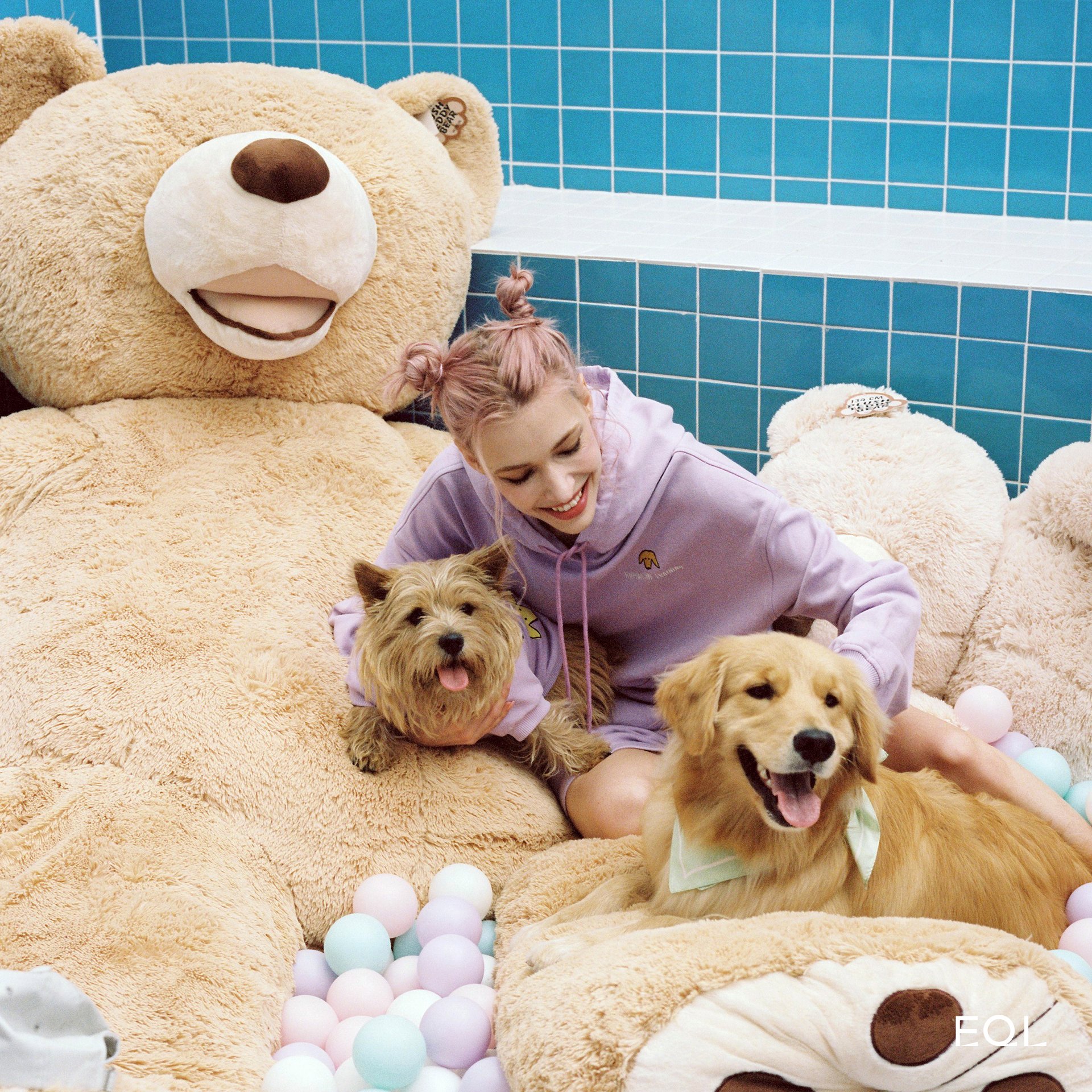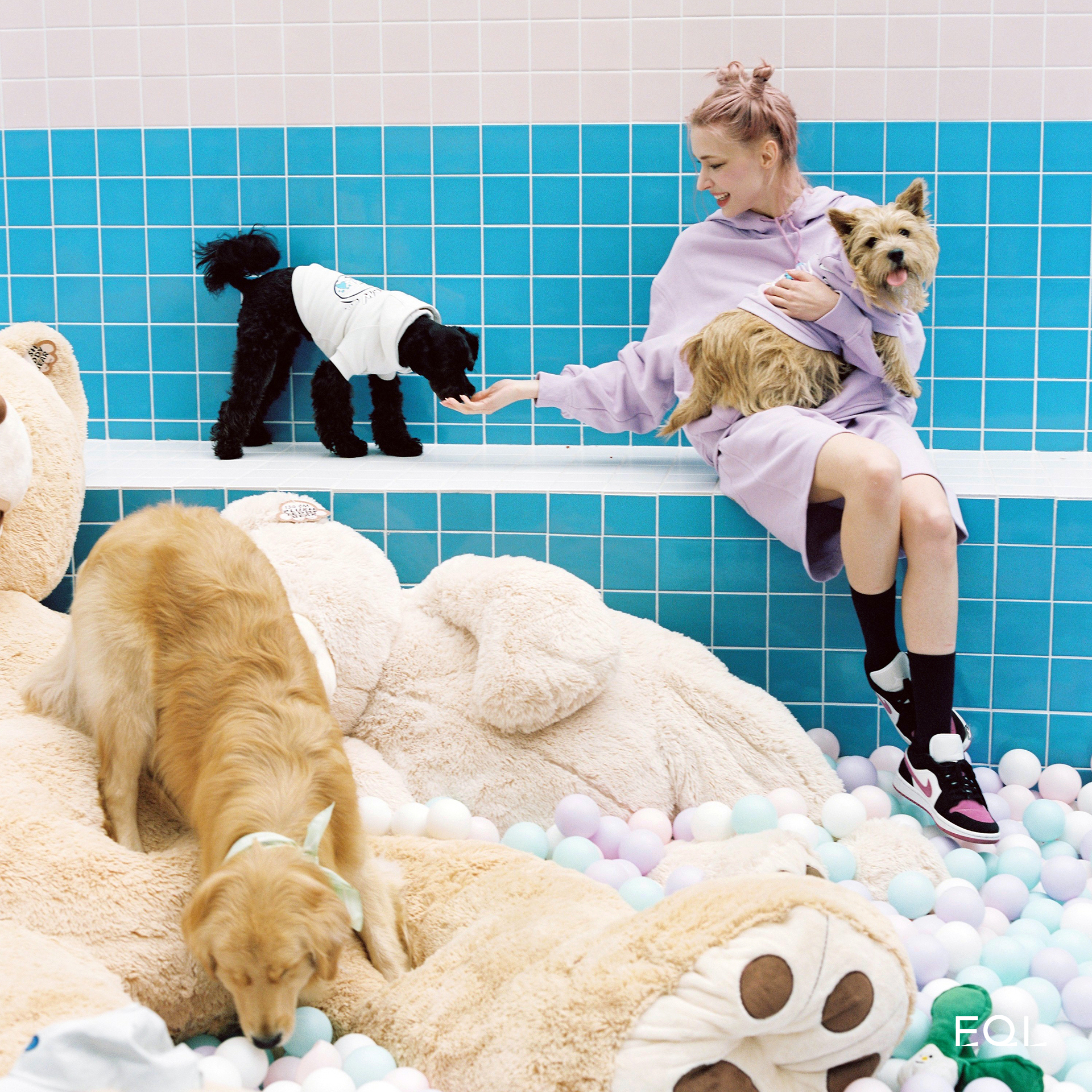 model Michova, Jelly, Bella, Pooch, Chewie